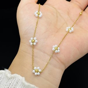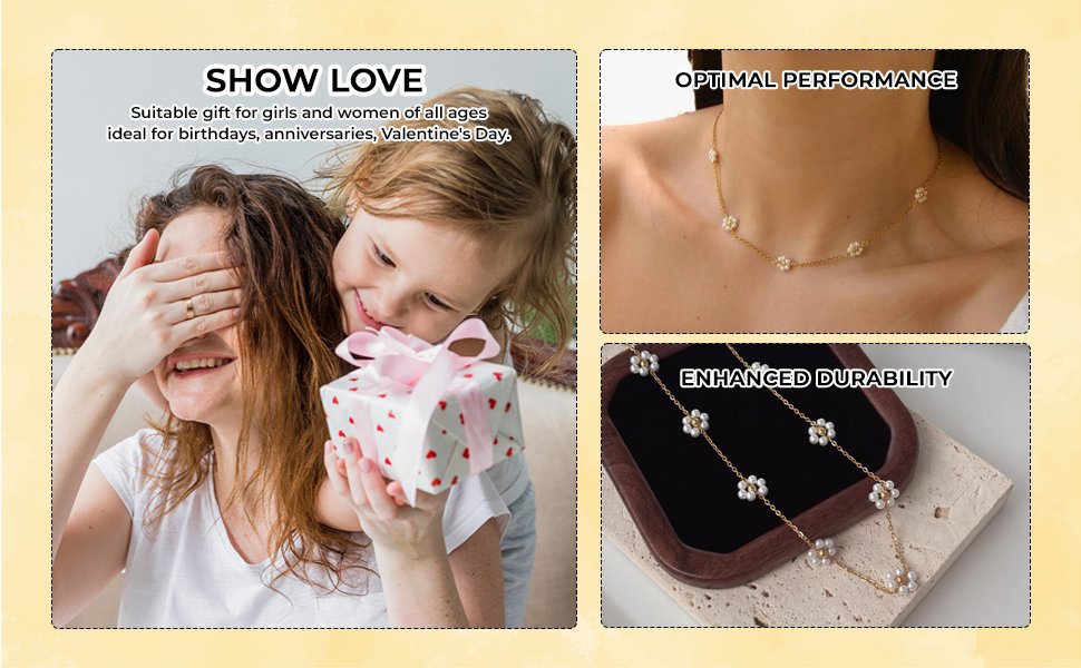 • PEARL FLORAL CHARM NECKLACE FOR TIMELESS ELEGANCE: This pearl necklace for women stands out with its delicate multi-flower charm design. Each flower pendant is adorned with faux mini pearls that exude sophistication and elegance. Perfectly set on a gold finish chain link, it exudes timeless beauty and makes a bold, feminine statement. Not only that, but there will be a special gift box for this stylish necklace, making it the perfect choice for gifting.